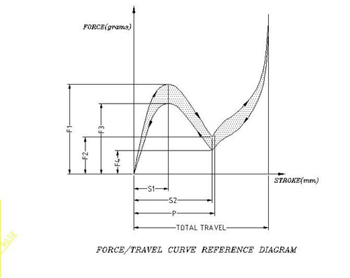 是在按扭的过程中按力和行程同步变化的曲线反映图。