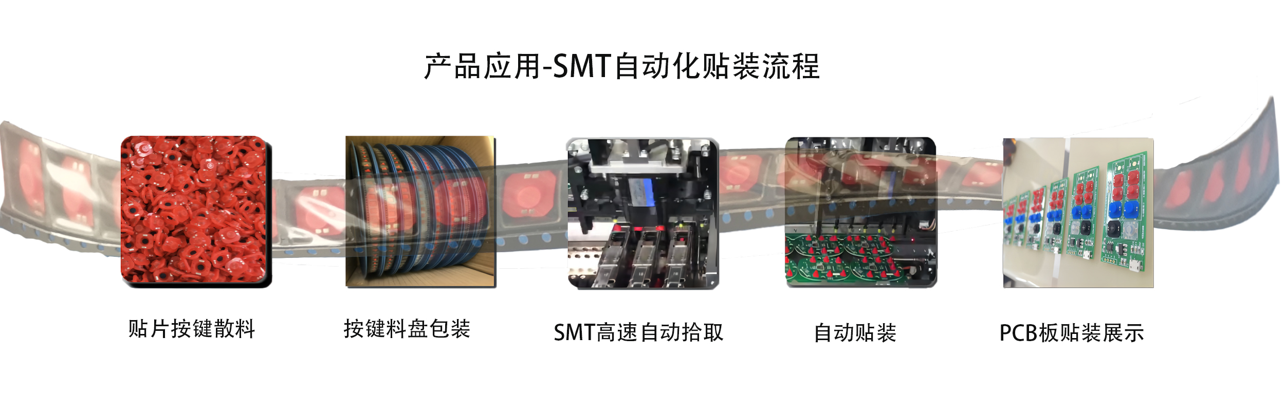 SMT硅胶按键是节约型、标准化应用元件,产品底部集成焊脚,可焊接使用且满足SMT自动化生产装配的应用需求